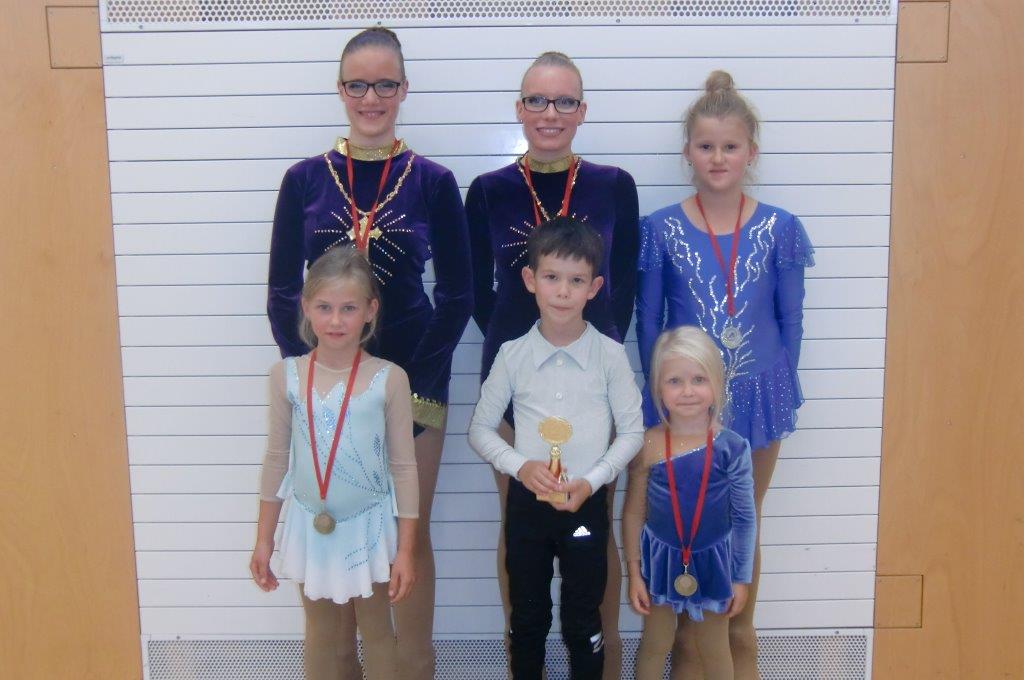 Der erste Start in der nächsthöheren Gruppe war für drei Läuferinnen besonders erfolgreich: Lynne Osterloh erreichte auf Anhieb Platz 1 in der Gruppe der Figurenläufer, gefolgt von Gina Seiberlich auf Platz 2.Und Mareke Groen freute sich über ihren dritten Platz bei den Freiläufern.