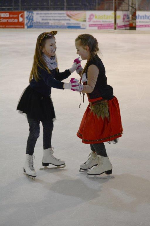 Anika und Julia waren zusätzlich noch in Einzelauftritten zu sehen. Anika zeigte ihre Kür als Schneider, und Julia präsentierte eine gefühlvolle Kür als Mutter, die Aschenputtel im Traum erscheint. Auch die gemeinsame Formation mit Läuferinnen aus beiden Vereinen klappte hervorragend.