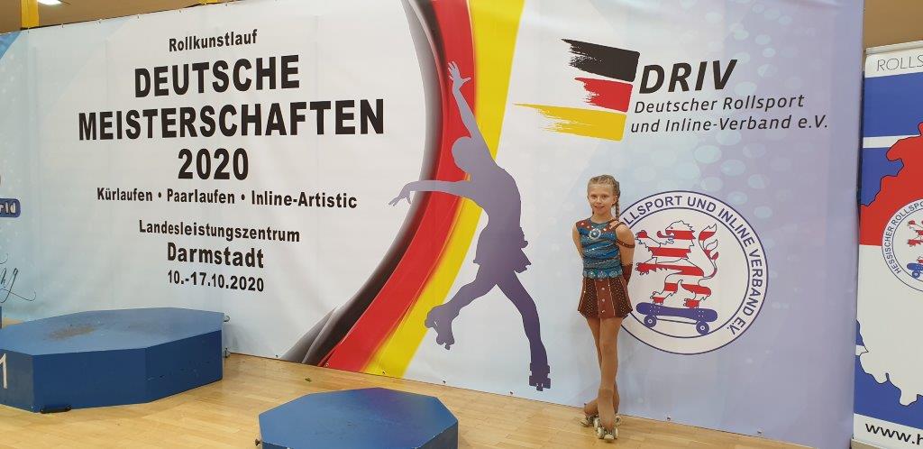 Vom Niedersächsischen Rollsport- und Inlineverband (NRIV) wurde hierfür die 10jährige Jördis Roeser nominiert. Das Training am Mittwoch verlief zufriedenstellend. Am Donnerstag musste Jördis als erste ihrer Gruppe starten, und die Nervosität war ihr anzumerken. Mit einer nicht fehlerfreien Kür erreichte sie Platz 10 in der Gruppe Schüler C, in der sie in diesem Jahr das erste Mal startete. Neu für Jördis waren die Wertung nach dem neuen Rollart-System sowie die Kameras von Sportdeutschland TV, die die Küren übertrugen. Was für eine Erfahrung unter diesen erschwerten Umständen!