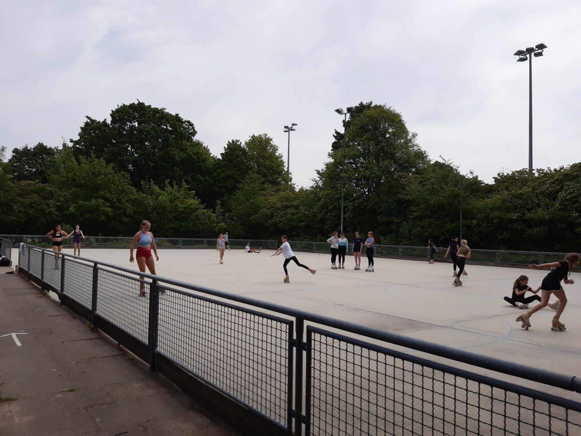 Für den 30. und 31. Juli war ein Trainingswochenende mit dem RESC Hameln und dem MTV Eintracht Celle geplant. Leider gab es bei den Trainern krankheitsbedingte Ausfälle, so dass am Sonntag wenigstens ein gemeinsamer Trainingstag stattfand. Unsere Trainer Jessica, Sarah, Bianca und Heinrich konnten insgesamt ca. 30 Läuferinnen aus den drei Vereinen begrüßen. Nach einer kurzen Erwärmung fanden in vier Gruppen Athletik-, Sprung-, Kür-, Pirouetten- und Spinnertraining statt.