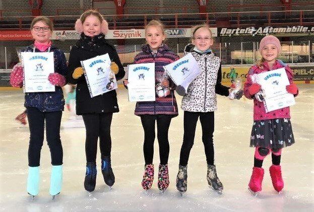 Tatjana Krobjinski beglückwünschte am 19. März Jola Strohmeyer, Prisca Brückner, Amelie Conradi, Lenya Willenborg und Ida Schwarz zur bestandenen Prüfung. Alle Läuferinnen freuten sich über eine Urkunde sowie ein kleines Präsent.