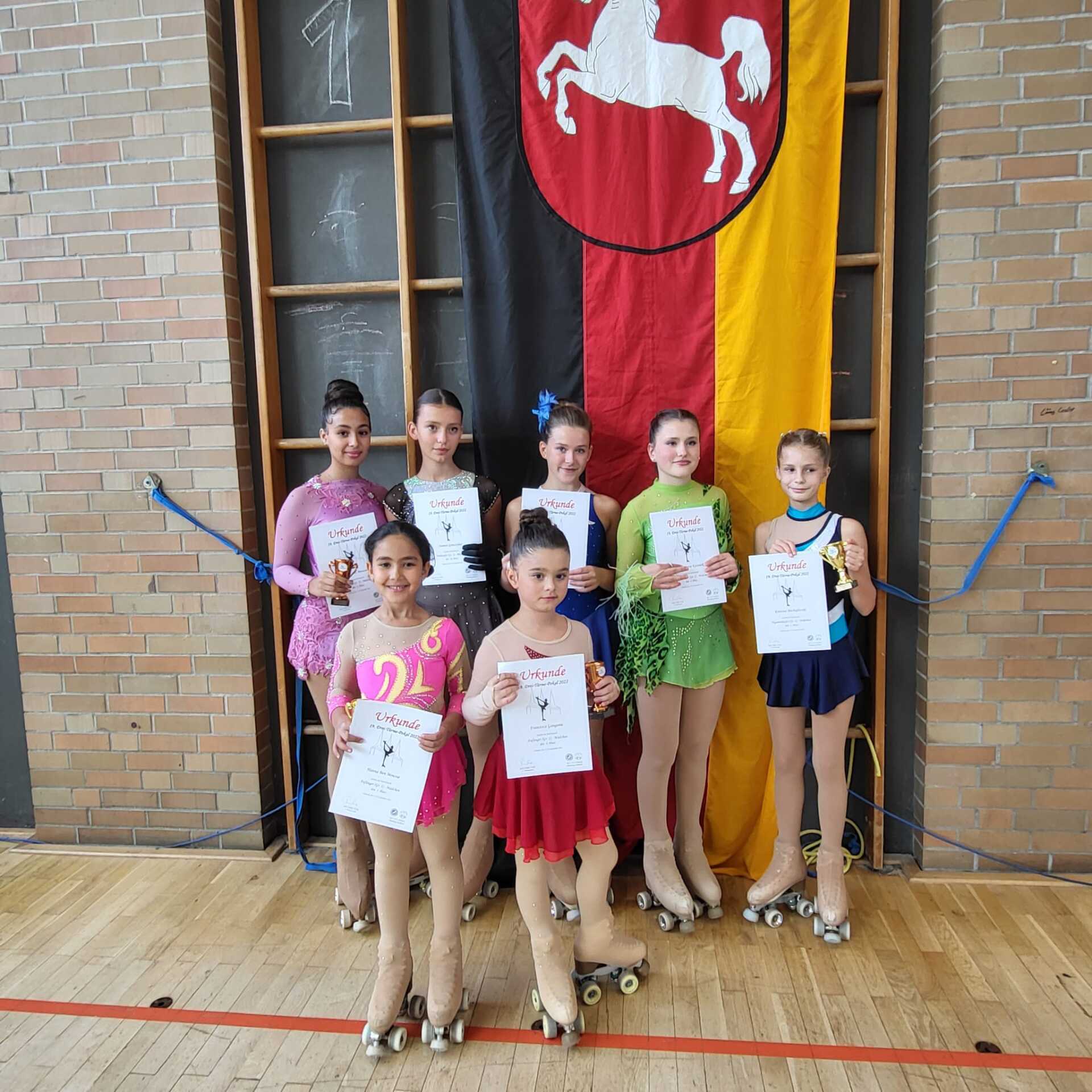 Vom Niedersächsischen Rollsport- und Inline-Verband (NRIV) wurde unsere Läuferin Clara Maria Koziolek für die Figurenläufer Gruppe 3 (Jg. 2010 und älter) nominiert. Die 14jährige Clara reiste mit ihrer Trainerin Jessica Dölle bereits am Freitag an, um am Training am Abend teilzunehmen. Am Samstagmittag fand dann die offizielle Eröffnungsfeier mit dem Einlauf aller Teilnehmer/innen statt.Bei ihrem Start am Abend konnte Clara einen tollen 6. Platz unter 11 Teilnehmerinnen erreichen.