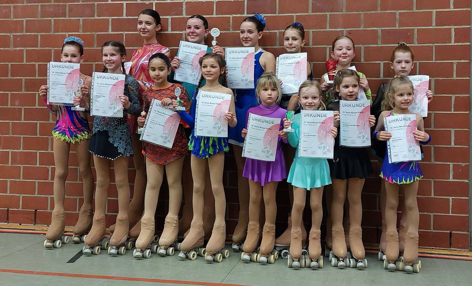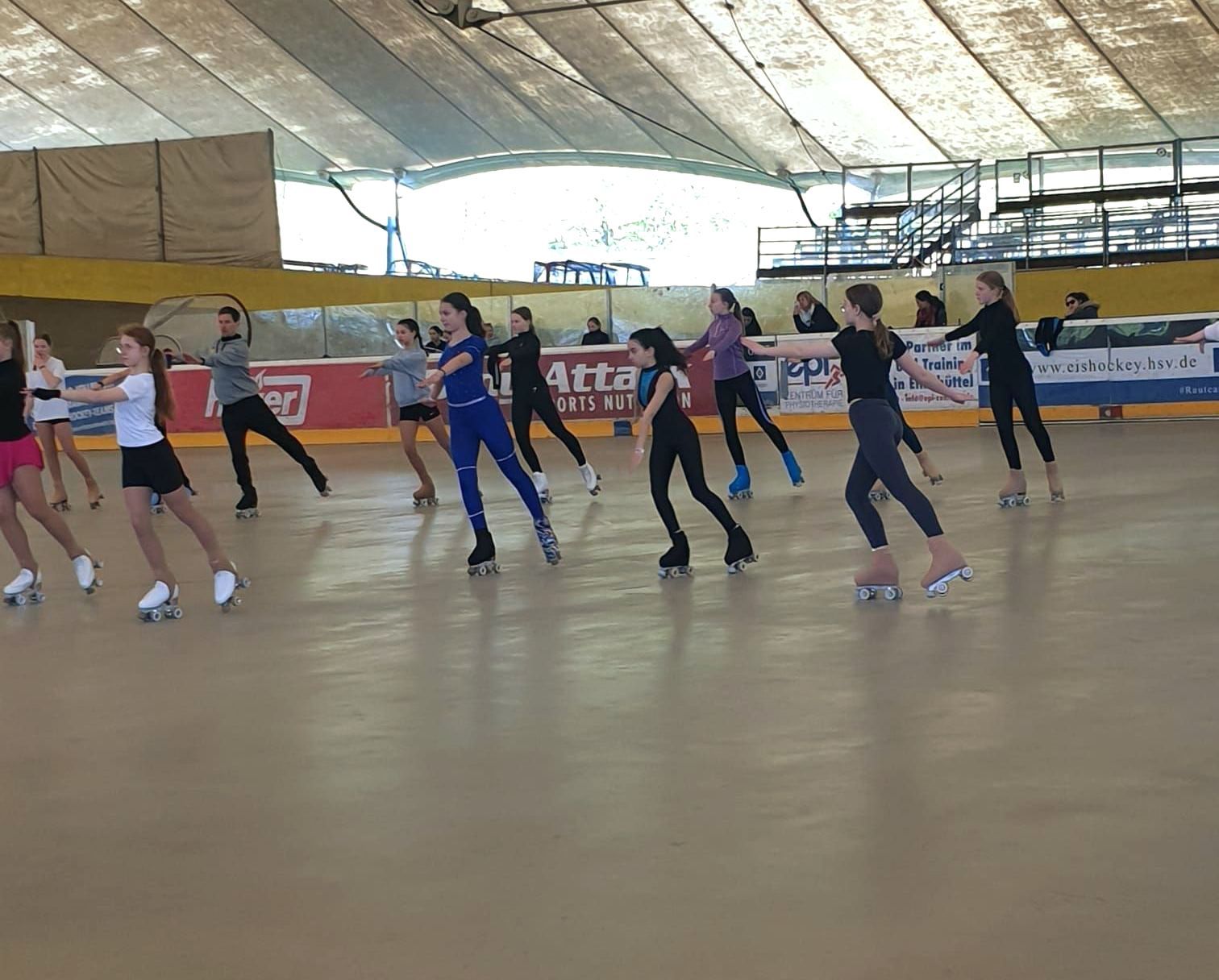 Unsere Läuferinnen Clara Koziolek, Nele Bigalke, Sabrin Ben Moussa, Beena Janssen, Kristina Michajlovski, Mia Neda Habibian, Melia Bigalke, Merle Behrens, Samira Gencceylan, Hanna Ben Moussa und Tessa Bischof nahmen am NRIV-Breitensportlehrgang in Groß-Berkel teil. Insgesamt hatten sich ca. 125 Läufer und Läuferinnen aus den niedersächsischen Vereinen angemeldet. Diese waren in 7 Gruppen von Freiläufer bis Cup Damen eingeteilt. Am Samstag standen Einheiten in Spinner- und Kürtraining sowie Athletikspiele auf dem Programm. Der Sonntag wurde komplett für Kürtraining genutzt. Unsere Läuferinnen waren mit Freude dabei und nutzten den Lehrgang als Vorbereitung für die kommende Saison.