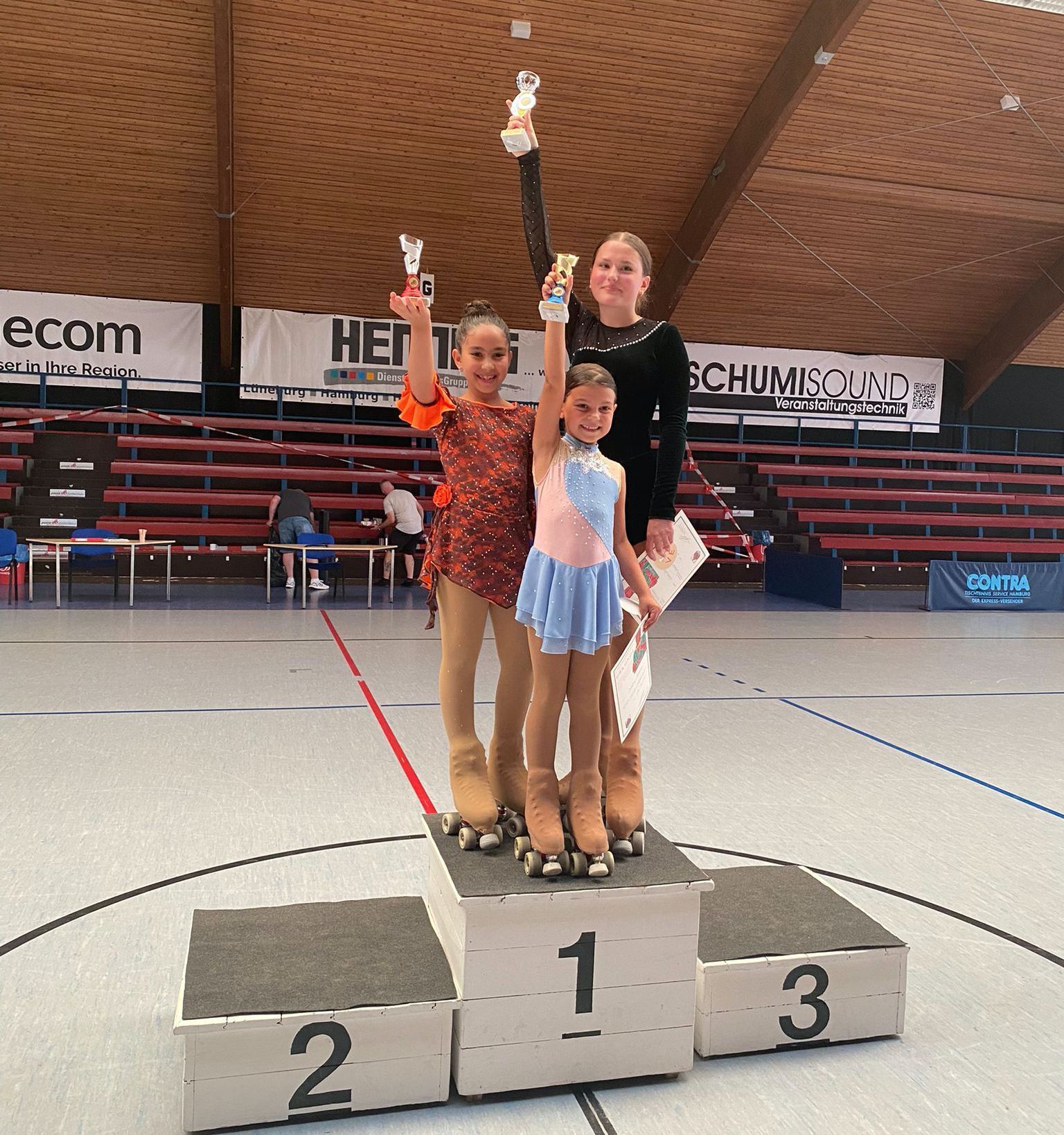 Es gab eine Reihe sehr guter Platzierungen. Bei den Freiläufern Gruppe 2 konnte Anouk Klopp überzeugen, gefolgt von Tessa Isabelle Bischof auf Platz 2. Und auch Prisca Colleen Brückner freute sich über den Silberrang bei den Anfängern Gruppe 2. Zum ersten Mal bei einem Wettbewerb starteten Elisa, Charlotte und Lotta bei den Minis Gruppe 2.