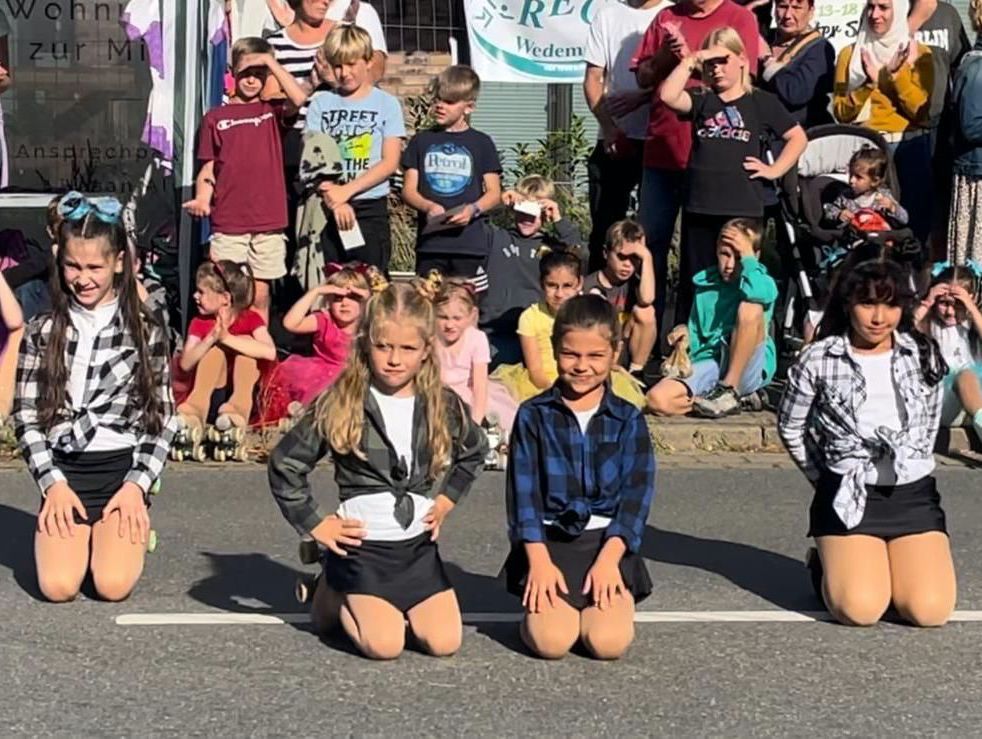 Der Bissendorfer Sonntag bot für einen Auftritt eine gute Gelegenheit. Die Straßen im Ortskern waren gesperrt, die Geschäfte geöffnet und viele Aussteller sowie Vereine präsentierten sich. Und so waren sowohl die älteren als auch jüngeren Läuferinnen aufgeregt, das Einstudierte vor einem größeren Publikum vorzuführen. Besonders für unsere Kleinsten war es ungewohnt, auf Asphalt auf der Straße zu laufen. Doch alle meisterten diese Aufgabe mit Bravour!